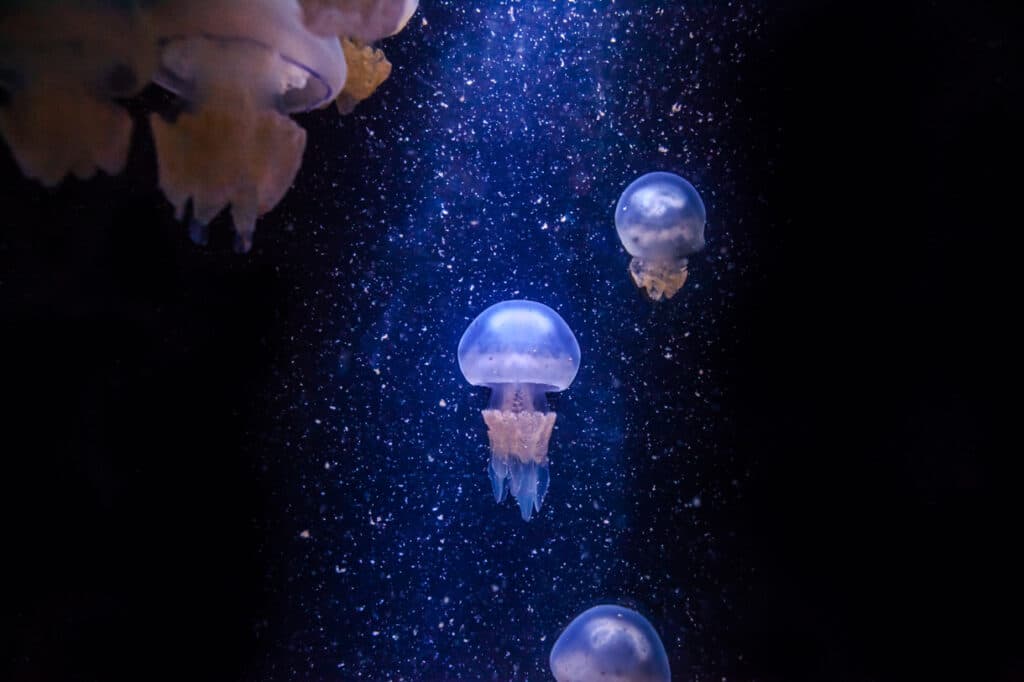 Le troisième espace est consacré aux méduses et aux profondeurs. En plus des méduses, quelques requins, barracudas et raies sont visibles.